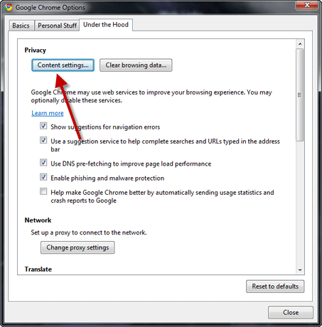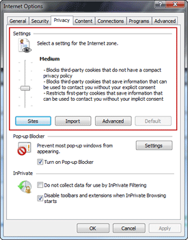 - Click the "Sites" button to enter specific websites that you wish to allow/disallow to set cookies