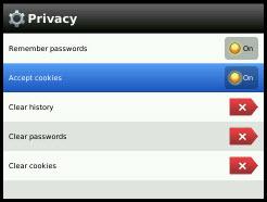 - Change the "Accept cookies" option to "Off" to block all cookies