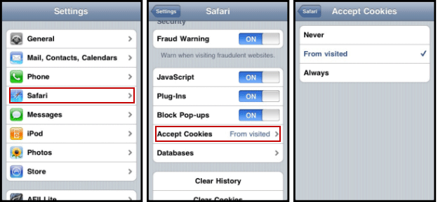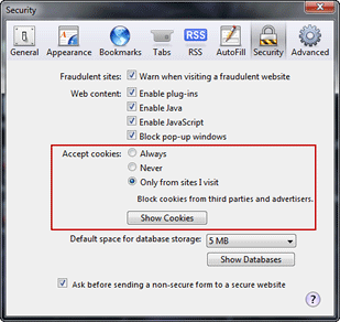 - Uncheck the "Accept Cookies from Sites" box to block all cookies Or